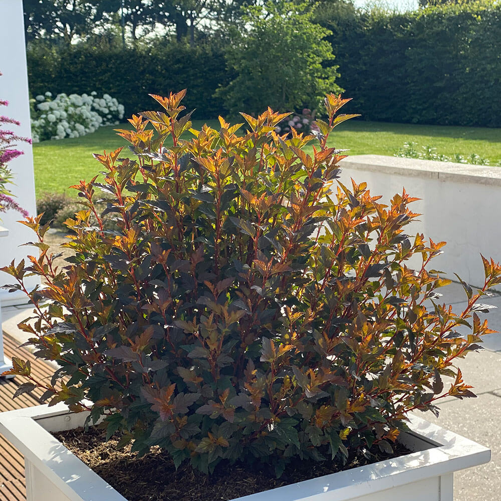Počet kusů v balení:3 ks Okrasný keř dorůstající do výšky 1,5 metru a zhruba stejné šířky. Růst je kompaktní a hustý. Opadavé listy jsou drobné, dělené do třech laloků. Při rašení jsou zářivě červené, později tmavě vínové, na podzim purpurově červené. Pro vybarvení listů je nezbytný dostatek slunce. Na neosluněných stanovištích nebo v partiích uvnitř keře jsou listy zbarvené do tmavě zelené až hnědočervené barvy. Drobné, bílé květy rozkvétají koncem jara, opakovaně nakvétá koncem léta na koncích nových výhonů. Plody jsou zářivě červené. Vysazujte na slunné až polostinné stanoviště do propustné, vlhké půdy s mírně kyselým pH. Řez není zpravidla nutný. Uplatní se ve skupinové výsadbě, zejména s rostlinami s kontrastní barvou listů. Plně mrazuvzdorná.