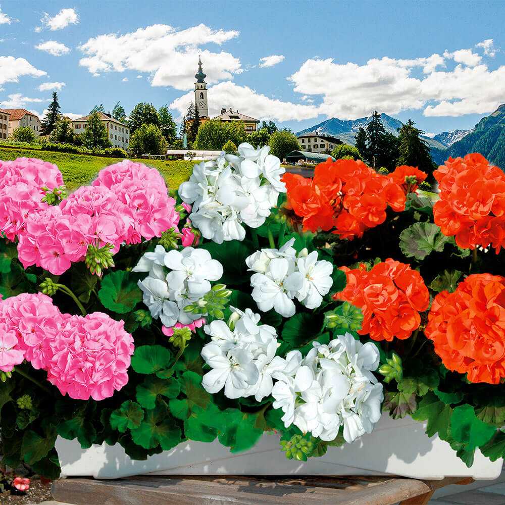 Počet kusů v balení:3 ks Muškát Sunrise® Clarissa vás okouzlí velkými, nápadnými květy, zářivě bílé barvy. Skvělý kontrast k této výrazné bílé barvě tvoří tmavě zelené listy. Vzpřímený růst. Tyto muškáty budou ozdobou každé terasy, květináčů, balkónových a okenních truhlíků.