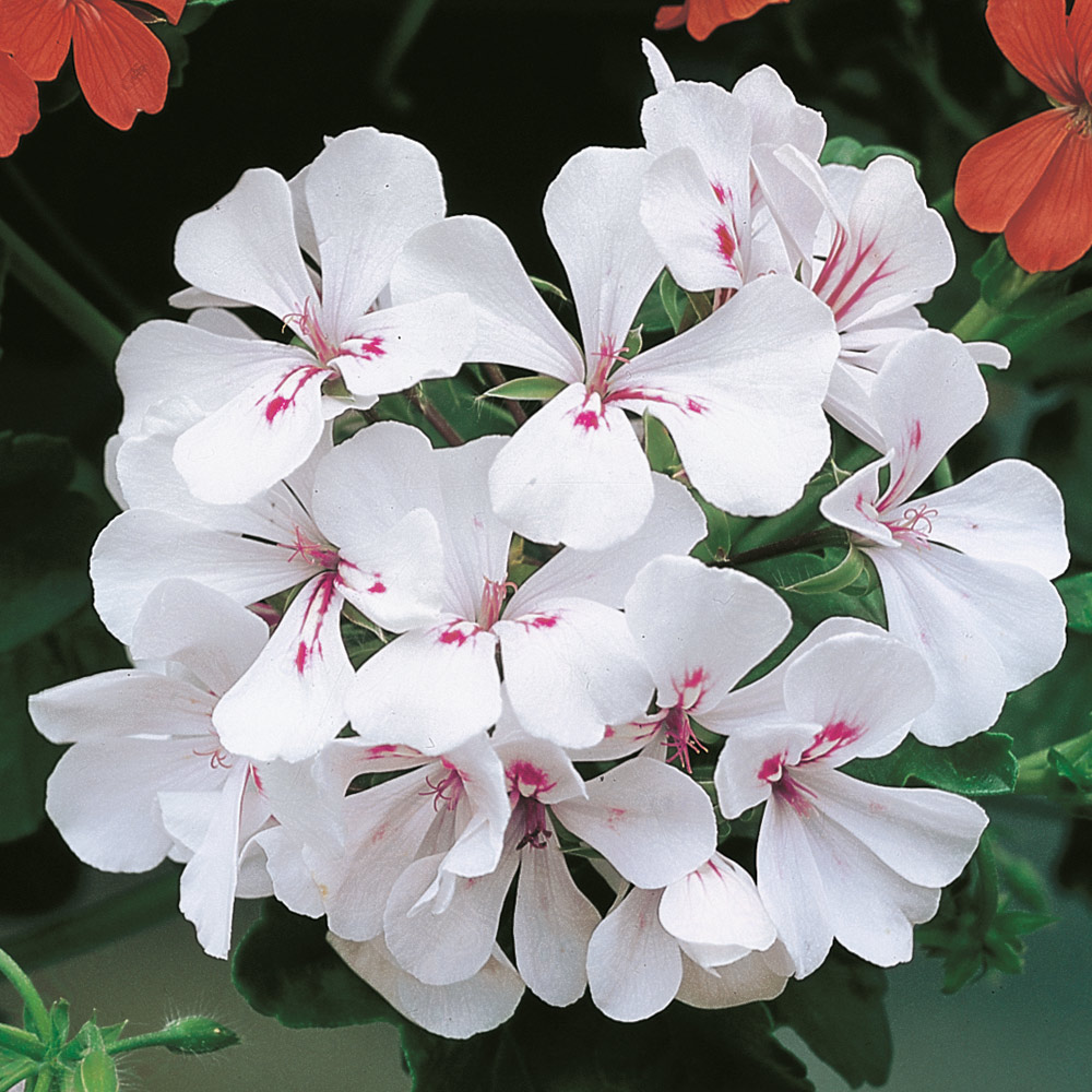 Počet kusů v balení:3 ks Bílý, s jemným růžovým třpytem a jasně červeným středem. Bohatě kvetoucí, převislé tyrolské muškáty. Dodáváme zakořeněné, silné a vitální rostliny v kontejneru, dobře zabalené. Robustní a odolné odrůdy té nejlepší kvality. Převislé muškáty potřebují velké množství živin.