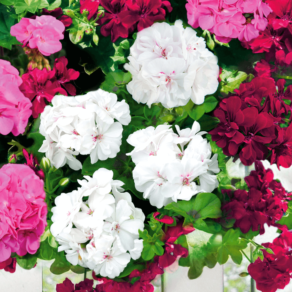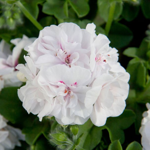 Počet kusů v balení:3 ks Převislý muškát. Poloplné bílé květy a tmavě zelené listy. Kompaktní růst. Bohatě kvete od pozdního jara do prvních mrazů.