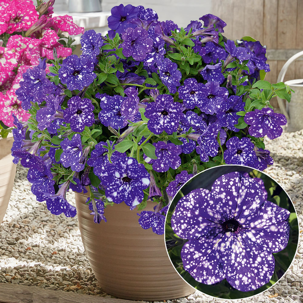 Počet kusů v balení:3 ks Modrofialové květy s bílými skvrnami připomínají noční oblohu. Lehce převislé, až 1 metr dlouhé výhony