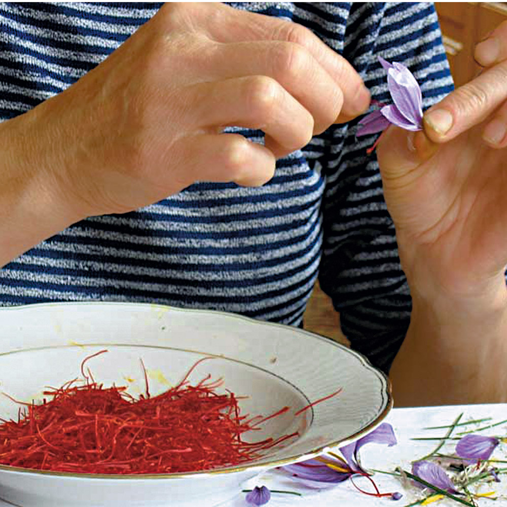 Sklízí se purpurově hnědé čnělky, v každém květu jsou tři. Po sklizni se usuší, nesmí se dostat na světlé místo. Před použitím je třeba je nejméně měsíc skladovat v uzavřené, neprůhledné nádobě.