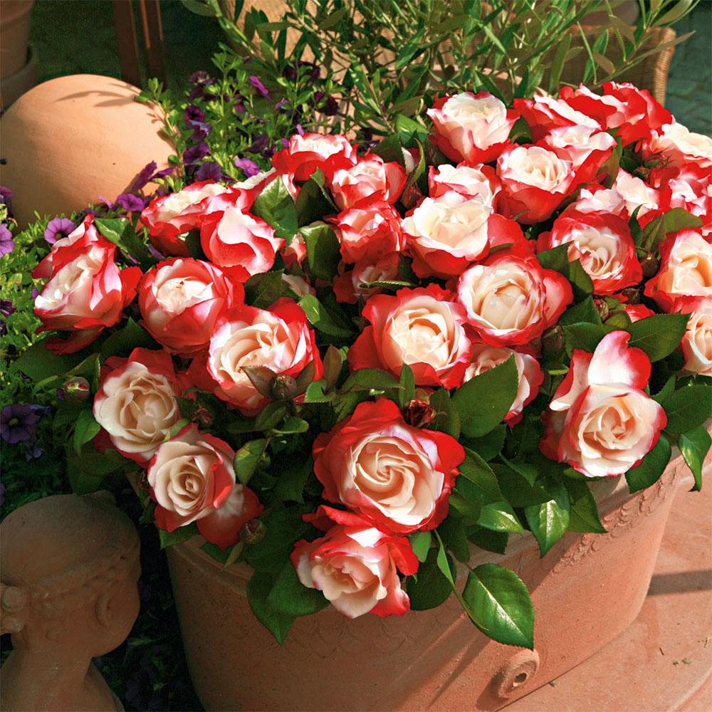 Všechny milovníky růží okouzlí také její vůně. Kvete nepřetržitě po celé léto. Výška cca. 80 cm.