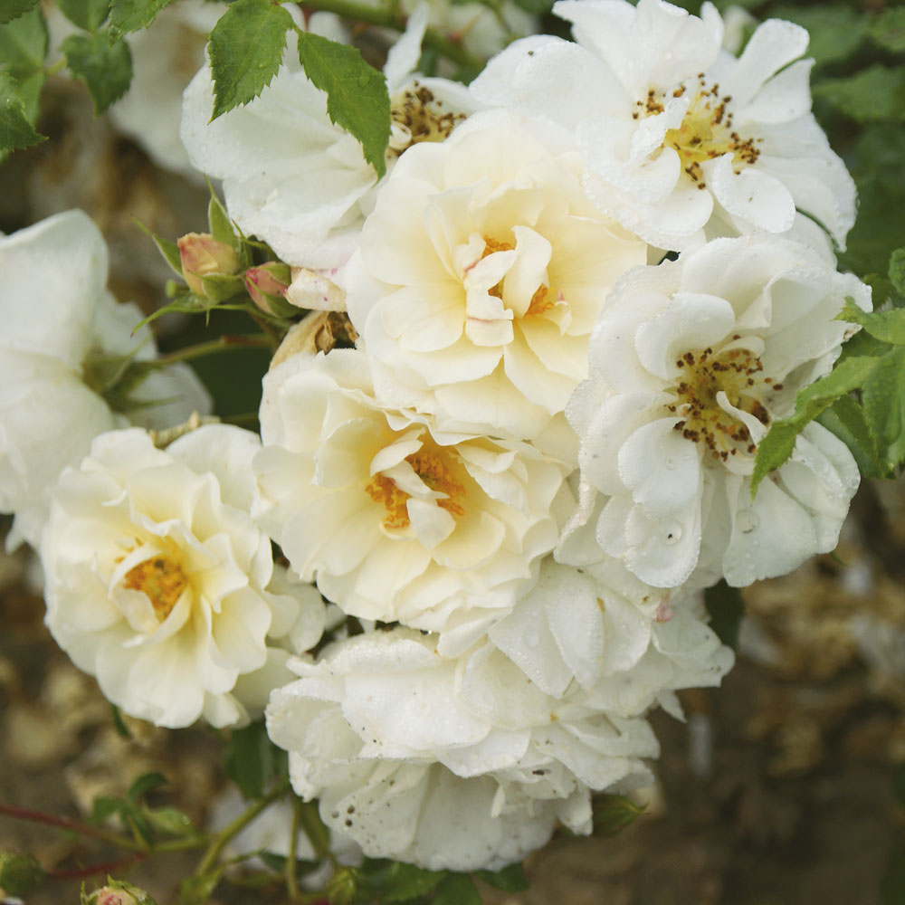 Počet kusů v balení:1 ks Mnohokvětá růže s bohatým kvetením, vynikající i jako půdopokryvná růže nebo do nádob. Krémově bílé květy. Dorůstá do výšky cca 60 cm a zhruba stejné šířky.