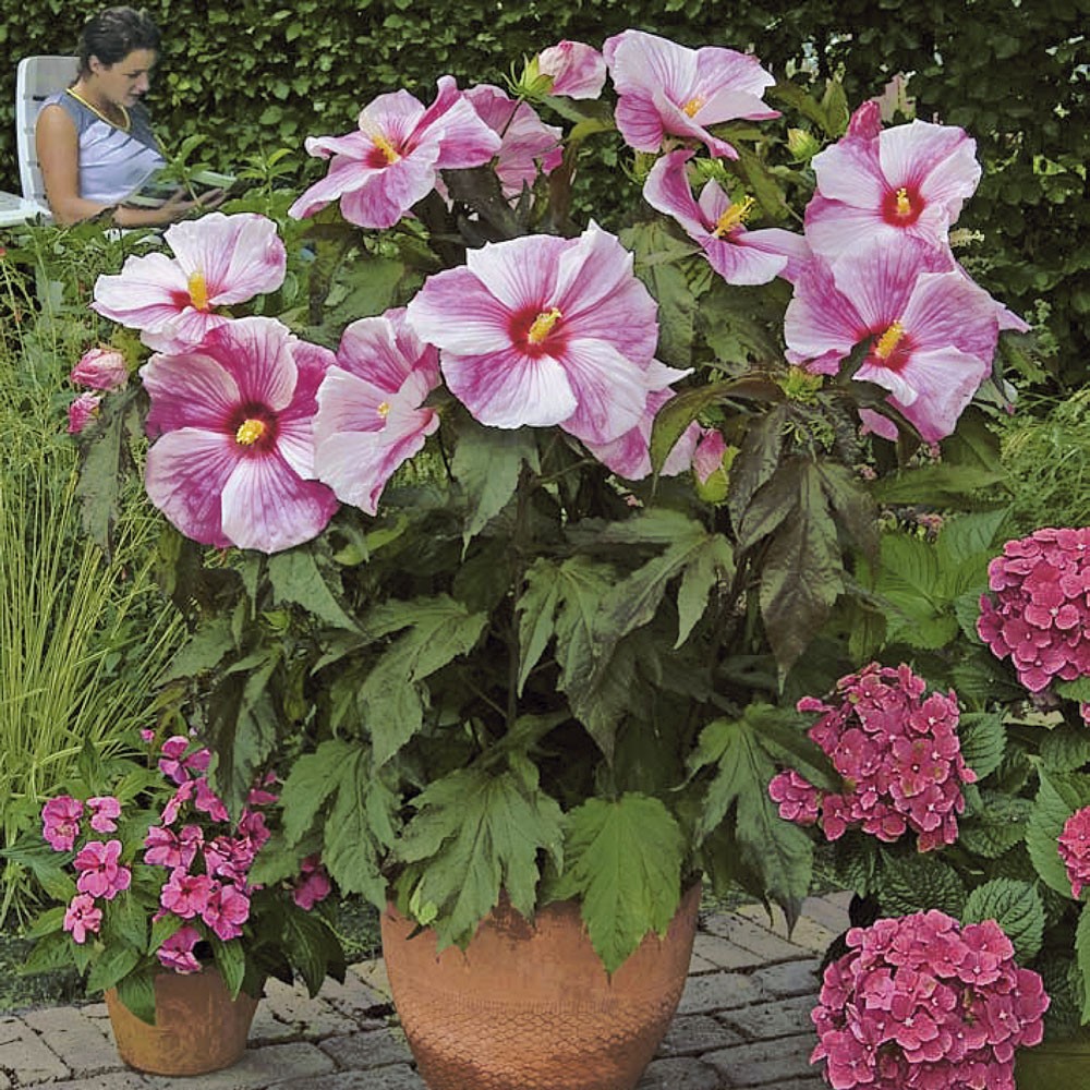 Počet kusů v balení:1 ks Velkokvětý bahenní ibišek. Barva květů je bílo-růžová s červeným žilkováním a nápadným, tmavě červeným středem. Mohou měřit až 20 cm v průměru. Kvete od července do konce srpna až začátku září podle povětrnostních podmínek. Listy mají sytou zelenou barvu s červeným nádechem, na zimu opadají. Dorůstá do výšky 1-1,5 metru a šířky kolem 1 metru. Vysazujte na slunné stanoviště, do výživné půdy. Substrát by měl být vlhký. Doporučujeme mulčovat povrch půdy. Na jaře odřežte všechny loňské výhony. Mrazuvzdorný do -30 stupňů.