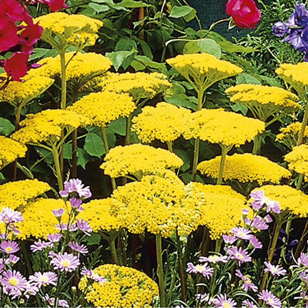 Počet kusů v balení:1 ks Asi 70 cm vysoká trvalka s nápadnými plochými žlutými květy a stříbřitými listy. Vysazujte na slunné stanoviště do propustné, středně výživné půdy. Kvete od června do září. Květenství lze také sušit a použít jako dekoraci.
