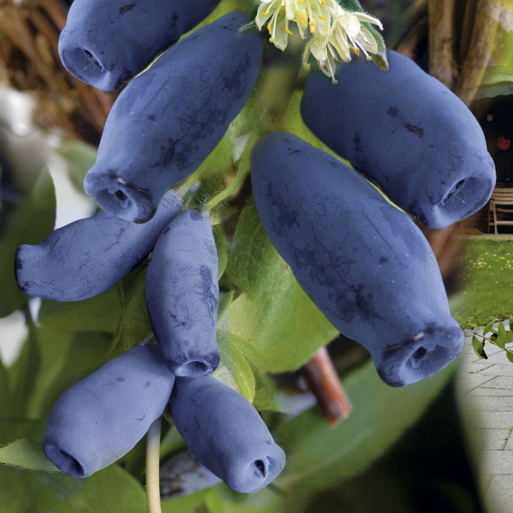 2 - 3 cm velké, sladké, chuťově podobné lesním borůvkám, zvenku modré, uvnitř světlé.