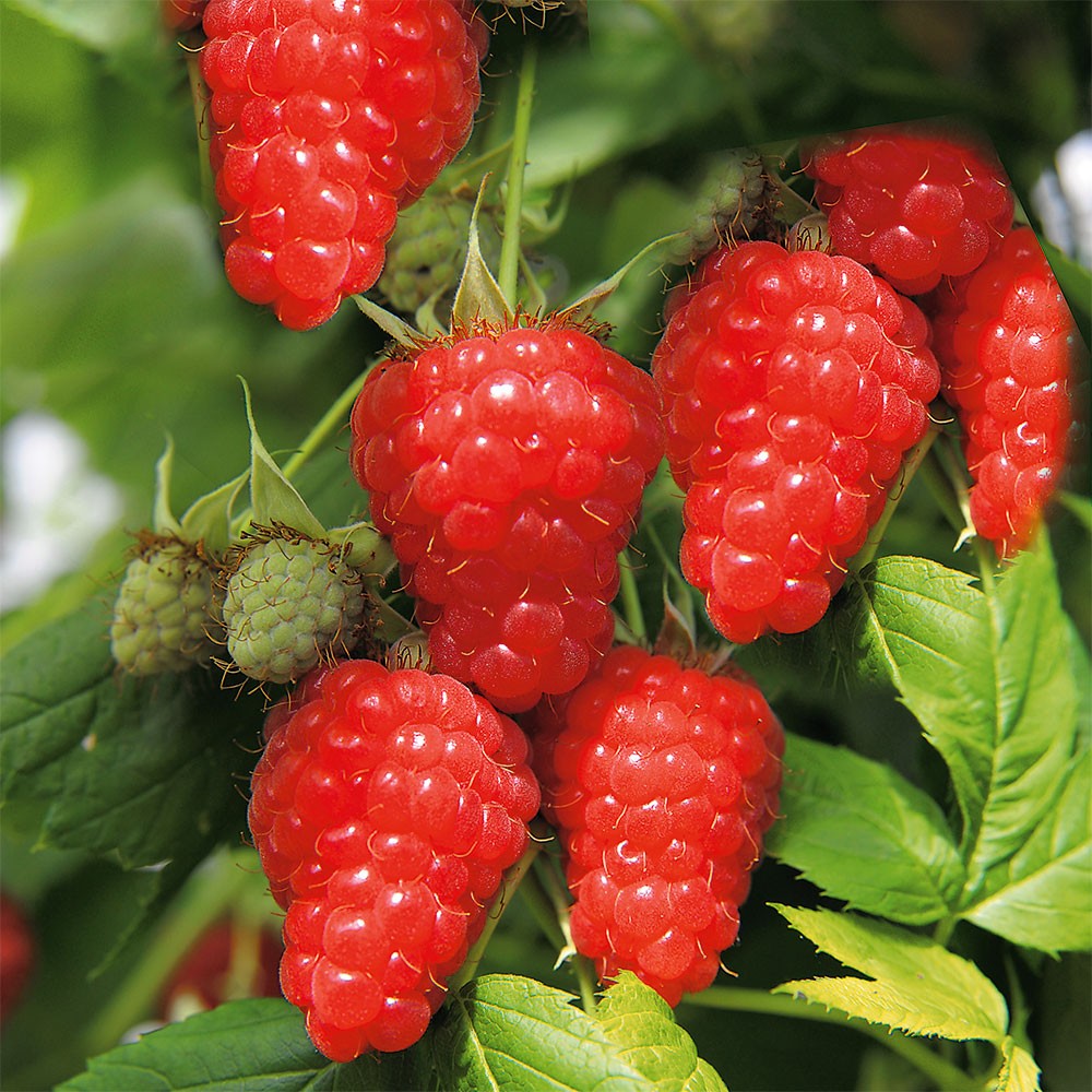 během roku. Plodí v raném létě od června a pozdním létě od srpna. Senzační kříženec dvou známých odrůd malin Autum Bliss, ze které pochází skvělé aroma a chuť a Tulameen s kompaktním, hustým růstem. Dvě plné sklizně během léta – excelentní chuť, dobrá skladovatelnost, jemná chuť a vůně lesních malin. Velmi velké, zářivě červené plody, asi jako mince v hodnotě 1 Euro. Robustní, zimovzdorná, nenáročná rostlina s kompaktním vzpřímeným, sloupovitým růstem. Ideální pro malé zahrady nebo do nádob na balkony a terasy.