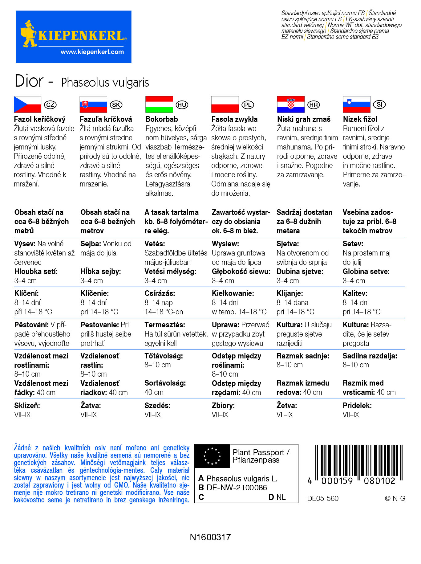 Počet kusů v balení:1 ks Zářivě žluté lusky dorůstají do délky 16-17 cm. Jsou vhodné pro přímou konzumaci, ke konzervování i k mražení. Rostlina dorůstá do výšky 40 -50 cm.