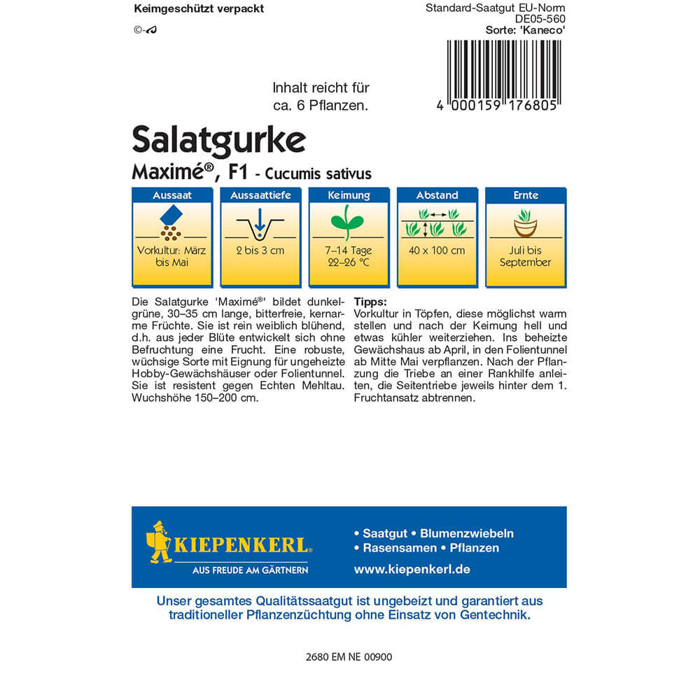Počet kusů v balení:1 ks 30 -35 cm dlouhé, tmavě zelené, nehořké okurky s malým množstvím semen. Partenokarpický typ okurky s pouze samičími květy. Robustní, vitální odrůda vhodná do skleníku. Zvýšená odolnost proti padlí. Dorůstá do výšky 150-200 cm.
