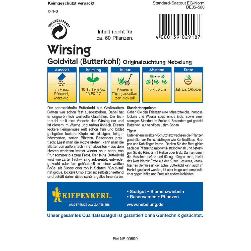 Počet kusů v balení:1 ks Hlávková kapusta s dlouhou dobou sklizně. Od července do prosince ji lze sklízet a po částech zpracovávat. Hlávky jsou během letních měsíců otevřené a lze tak zvenčí sklízet jednotlivé listy. Uvnitř stále dorůstají nové a křehké listy svěží zelené barvy. Později se uzavřou do pevné hlávky, kterou lze v chladu skladovat po dobu několika týdnů. Kapusta se vyznačuje vysokým obsahem vitamínu C, vlákniny a kyseliny listové. Využívá se k detoxikaci organismu, k posilování imunitního systému a ke snižování hladiny cholesterolu v krvi.