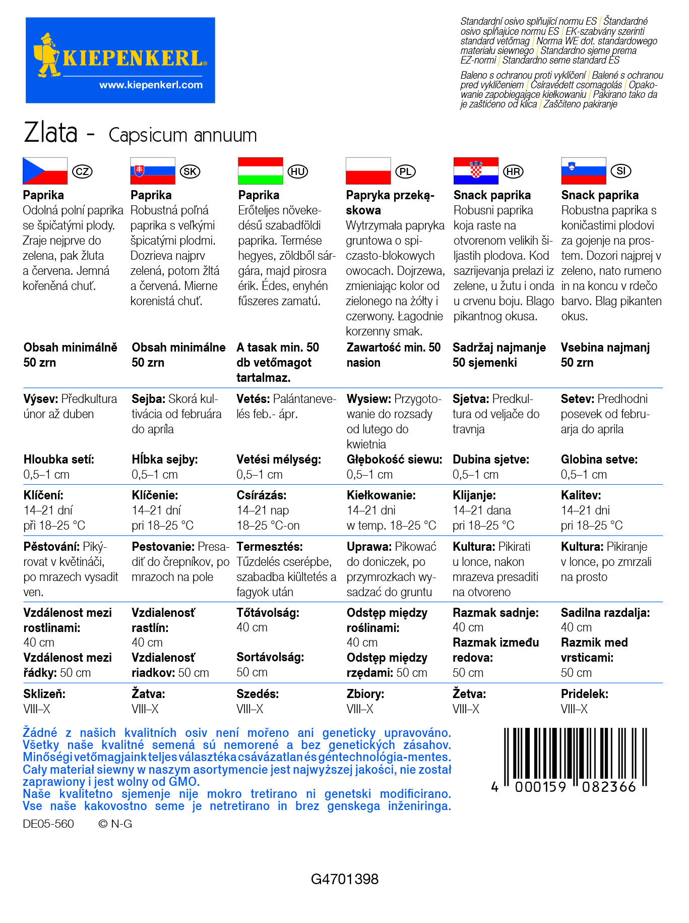 Počet kusů v balení:1 ks Odolná odrůda se špičatými plody. Během zrání mění barvu od zelené přes žlutou až do červena. Jemná kořeněná chuť. Možnost pěstovat na záhonu i ve skleníku.