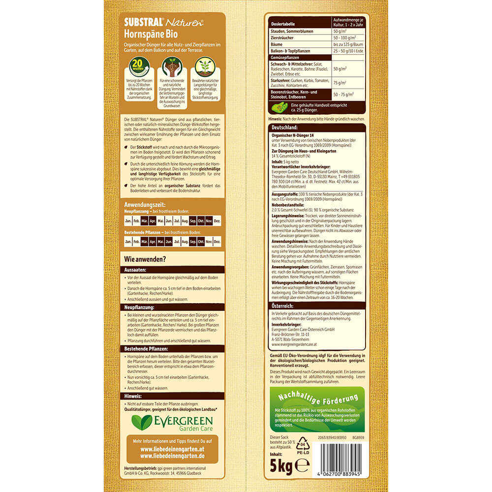 Počet kusů v balení:1 ks Rohovina je přírodní, dusíkaté dlouhodobě působící hnojivo, obsahuje 14% organicky vázaného dusíku. Využívá se ke všem plodinám, které mají zvýšené nároky na dusík. Vhodné pro zeleninu, květiny i vodní rostliny. Optimální použití hnojiva je na jaře při přípravě půdy, před setím nebo sázením. Dále v průběhu a na konci vegetace. Rovnoměrně rozhoďte a zapravte do půdy nebo přimíchejte do substrátu. Po aplikaci hnojiva doporučujeme důkladnou zálivku. Balení 5 kg.