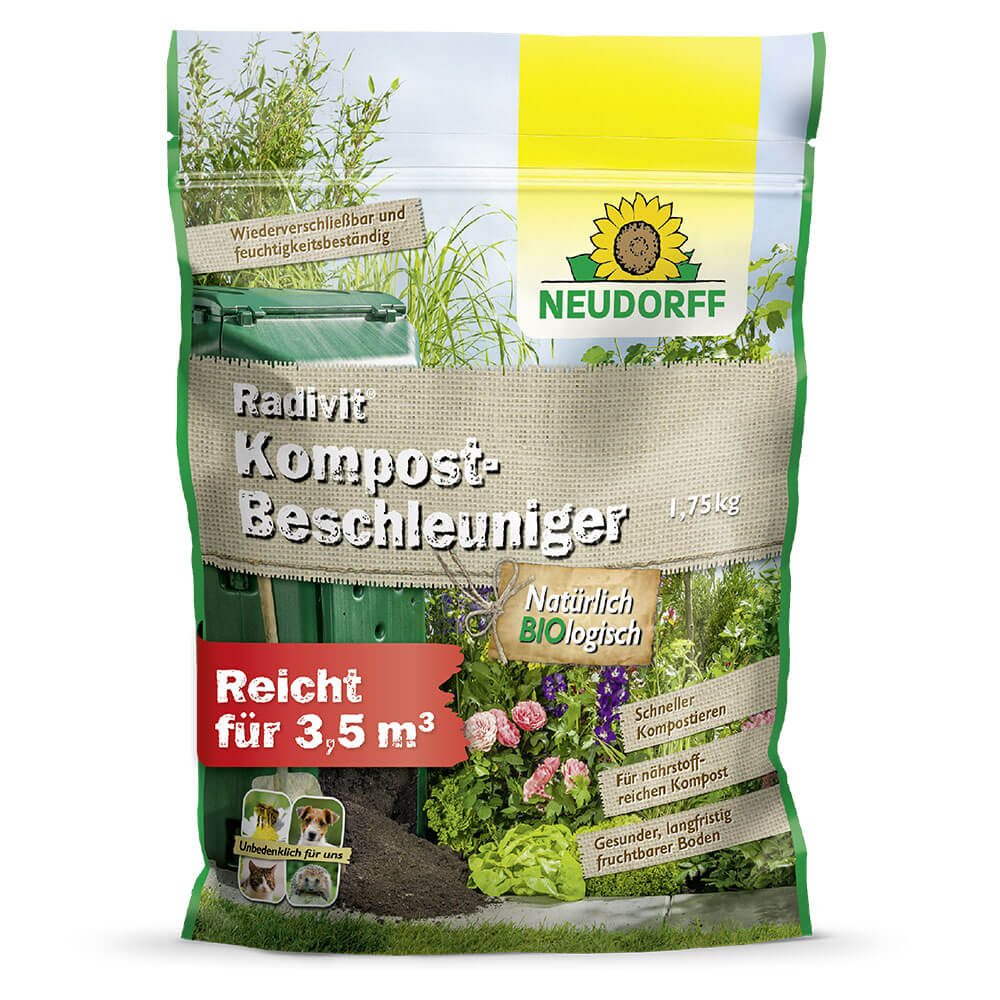 Počet kusů v balení:1 ks Umožňuje rychlé a optimální kompostování kuchyňských a zahradních odpadů, posečené trávy a spadaného listí. Obsahuje velké množství humifikačních organismů ve speciálním živném substrátu z glycidů a proteinů. Přídavkem Radivitu se obohatí kompostovaný materiál o přírodní humifikační mikroorganismy. Zároveň se tím předchází klíčení nežádoucích semen a dosahuje se rychlé přeměny odpadů na kvalitní a hygienicky nezávadný kompost. Urychlovač kompostů s přírodními půdními mikroorganismy. 1 kg vystačí na kompostér o objemu 2 m3 nebo 30 m2 plochy. Přípravek je účinný po dobu 2-6 měsíců podle povětrnostních podmínek. Nepoužívat spolu s násadou kalifornských žížal. Balení 1,75 kg.