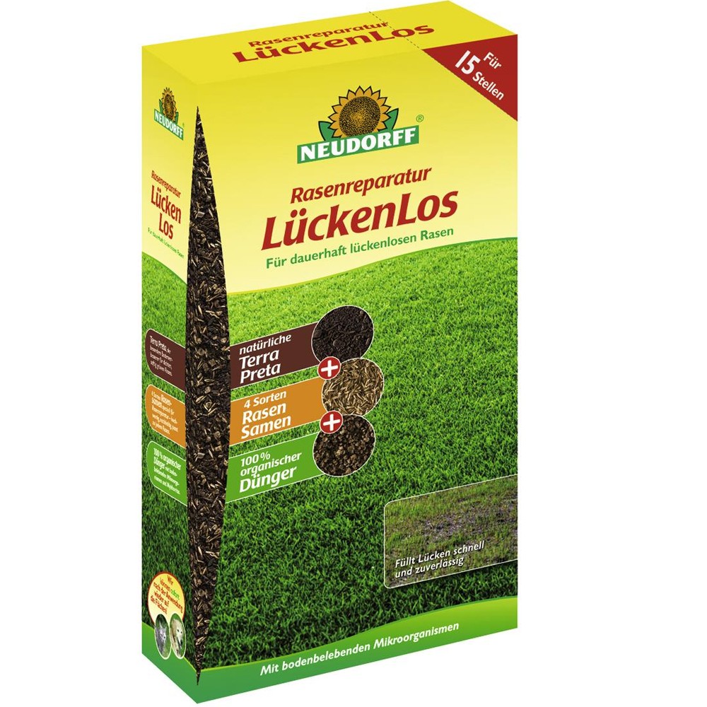 Počet kusů v balení:1 ks Směs pro opravu trávníku obsahující Neudorff Terra Preta, 4 druhy rychle vzcházejících travních semen a 100% organické hnojivo. Pro zacelení děr v trávníku, odolnost a svěží zelenou barvu. Neodstraňuje pouze nedostatky na povrchu trávníku, ale působí i v kořenech a zlepšuje tak celkový vzhled a kondici. Používejte od března do září při teplotách min. 10 °C. Balení 1,2 kg vystačí na cca 15 míst (3 m²).