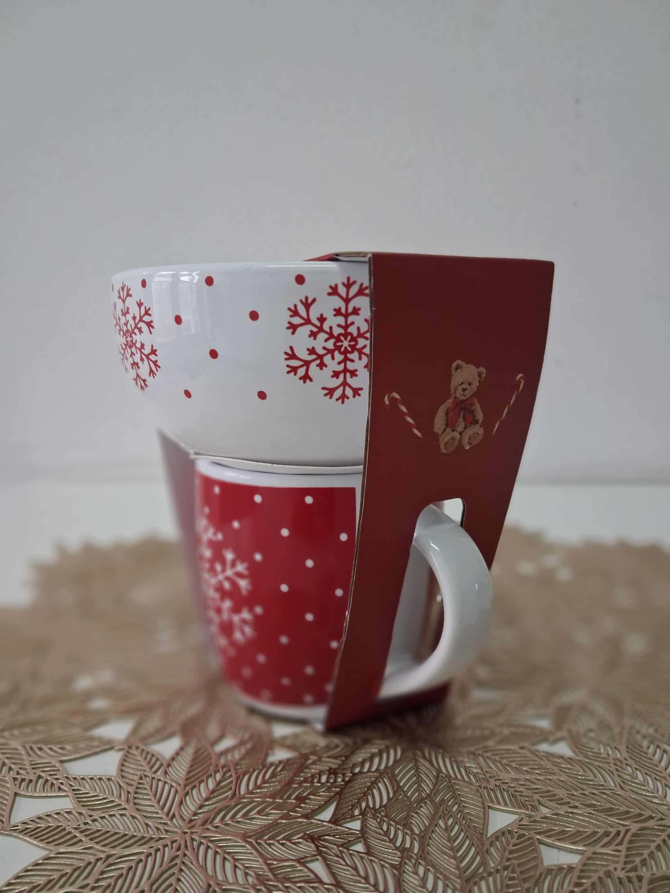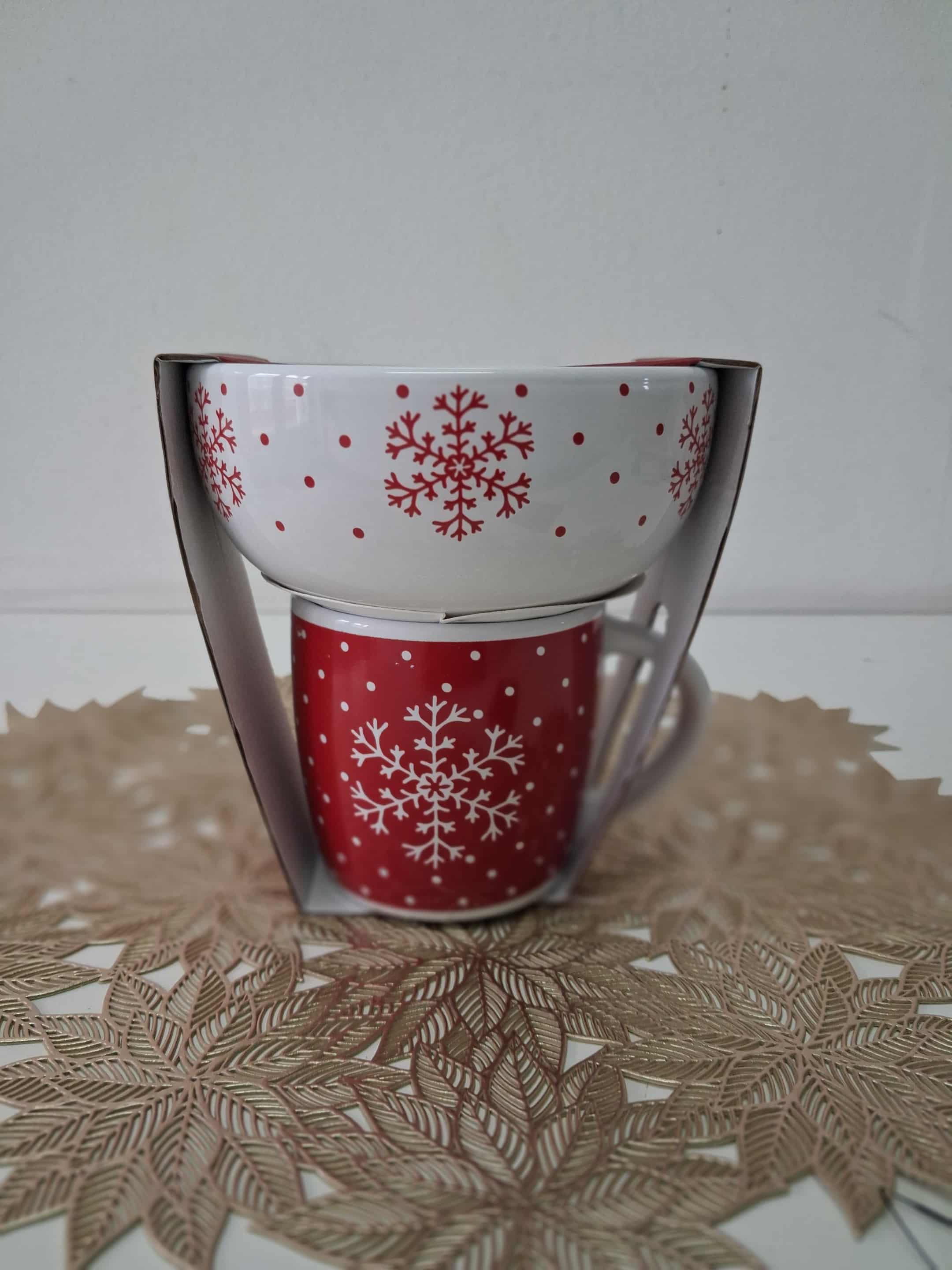 Sadu hrnku a misky s vánočním motivem. Velikost: průměr misky na cereálie 15 cm, výška sady 16,5 cm