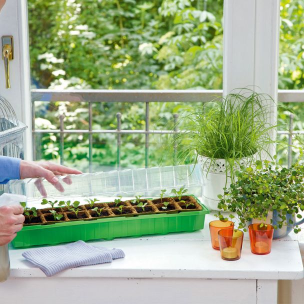 Počet kusů v balení:1 ks Pokojové pařeniště vyrobené z recyklovaného plastu. Ventilační otvory poskytují optimální podmínky pro předpěstování sazenic bylinek, zeleniny či květin. Kondenzát z víka stéká zpět do misky, ne na parapet. Sadbovač naplňte substrátem, vložte semena, substrát navlhčete a zakryjte víkem. Nezapomínejte pravidelně větrat a zalévat. V případě potřeby zajistěte teplo a světlo. Rozměry: 54 x 15 x 12 cm, včetně sadbovače z celulozy, s 16 květináči o průměru 6 cm.