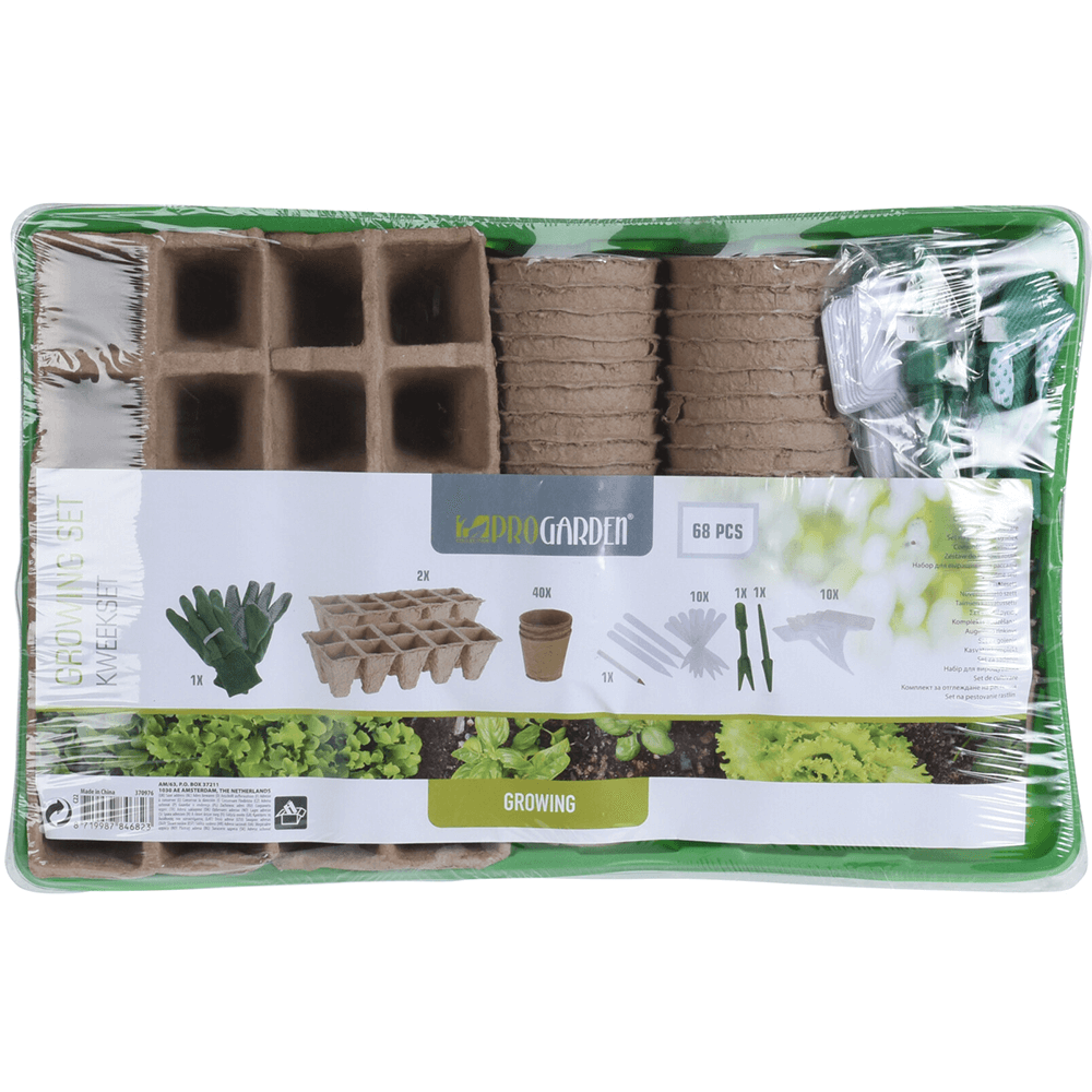 Počet kusů v balení:1 ks Sada pro pěstování rostlin PROGARDEN se skládá z 68 částí a obsahuje vše potřebné pro úspěšné předpěstování rostlin v domácnosti na parapetu nebo v zimní zahradě. Balení obsahuje 2 rašelinové sadbovače (každý pro 10 rostlin), 40 rašelinových květináčů, 10 popisovacích štítků, 10 popisovacích zápichů, tužku, výsadbový kolík, vidličku na pikýrování, lopatku, víko a pracovní rukavice. Rozměr balení: 37 x 23 x 5,5 cm