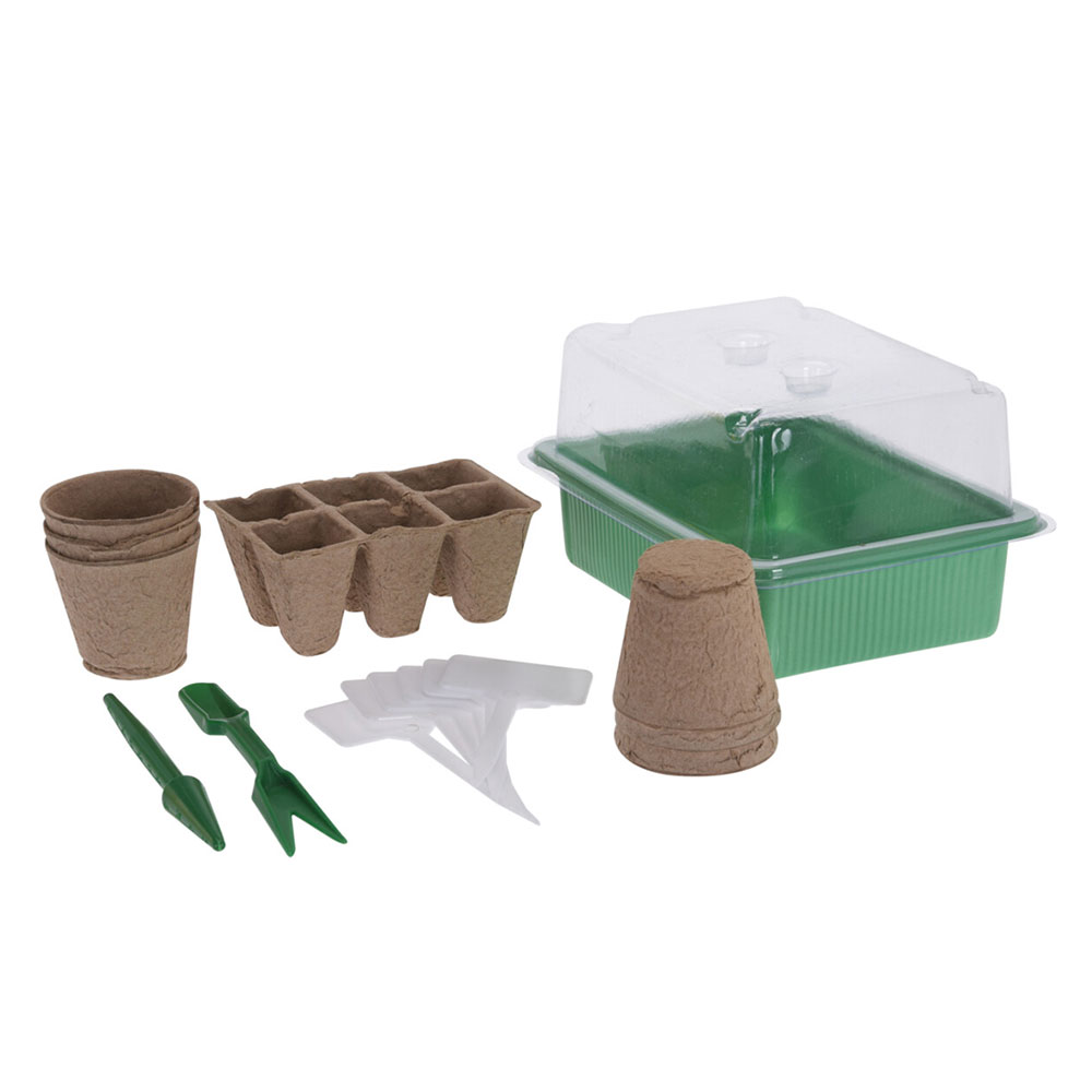 Počet kusů v balení:1 ks Pro úspěšné předpěstování sazenic. Rozměry: 20 x 6 x 14 cm, s víkem, 6 květináčů, 1 sadbovač, 6 štítků a pikýrovací nástroj.
