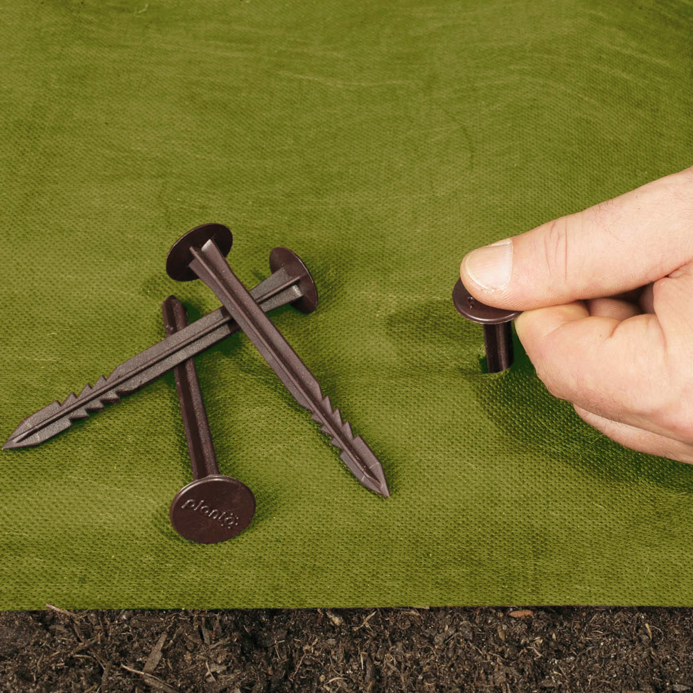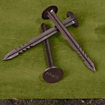 Počet kusů v balení:10 ks Hřeby pro upevnění a zajištění fólie. 11,5 cm dlouhé, 2,5 cm průměr hlavičky, PP (Polypropylen). Balení 10 ks.