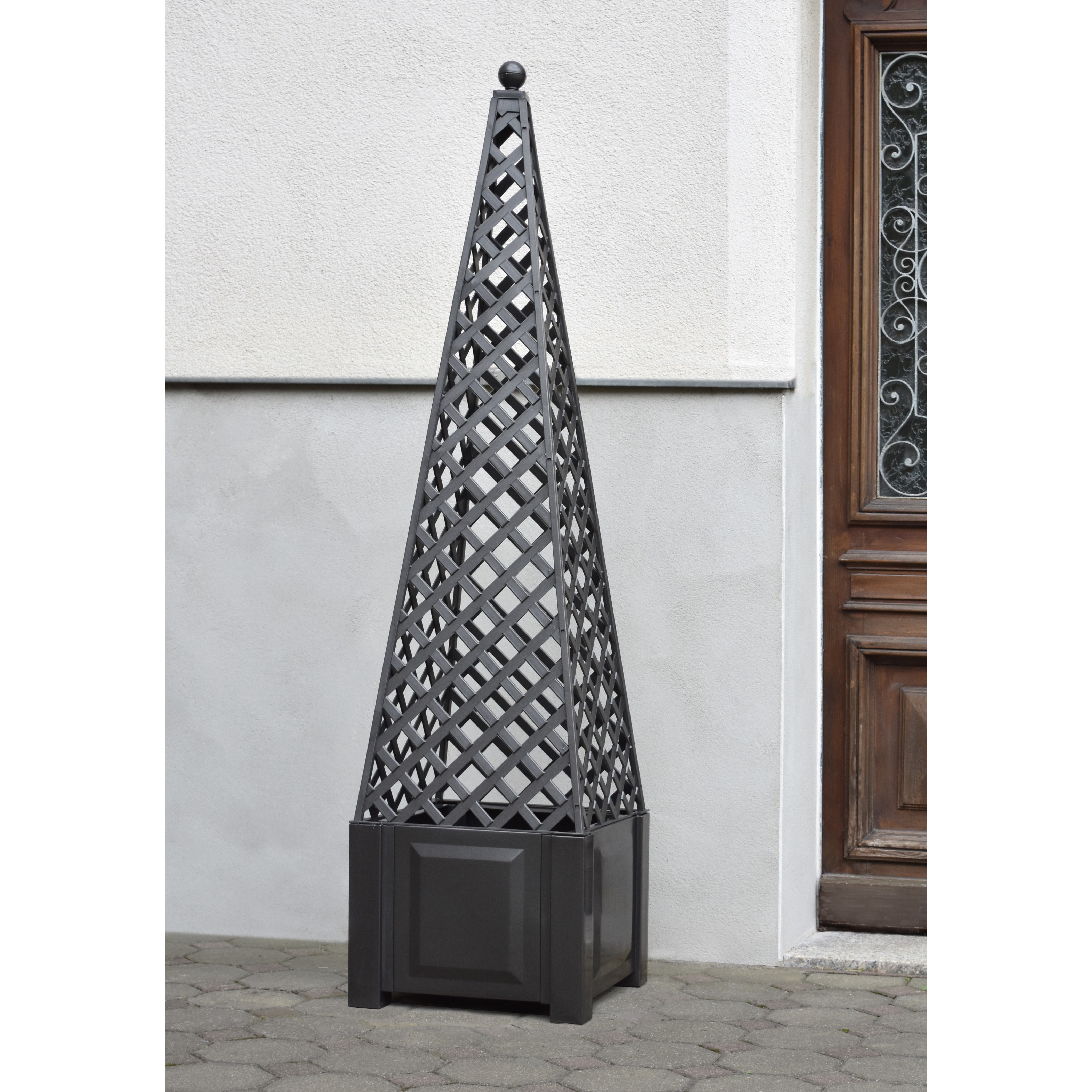 Počet kusů v balení:1 ks Plastová mříž „Obelisk“ ve tvaru jehlanu s odnímatelným truhlíkem. Pro vytvoření působivé dekorace v exteriéru i interiéru. Mřížkovaná struktura umožňuje dobré prorůstání pnoucích rostlin nebo ho lze snadno dekorovat např. jako vánoční stromek. Odolný mrazuvzdorný plast lez ponechat venku po celý rok. Rozměry: 43 x 43 x 172 cm. Dodáváme bez dekorace.